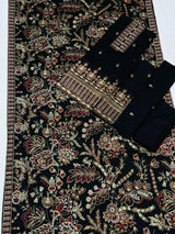 This Luxury Embroidered Black Dhanak Suit is perfect for formal gatherings, festive events, or evening wear. With its elegant embroidery, rich black hue, and warm fabric, it offers a refined and graceful winter look that exudes timeless charm.