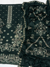 Luxury Embroidered Dark Green Dhanak Winter Suit