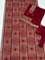 Luxury Embroidered Maroon Dhanak Winter Suit