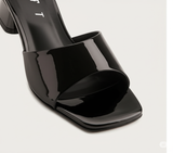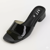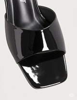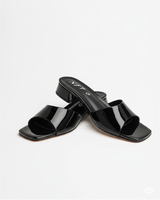 Make a bold statement with these sleek and modern glossy mules. Designed with a high-shine, black patent finish, these shoes exude a sophisticated and polished vibe. The single wide strap across the foot provides a secure fit while the open-toe, square-toe design adds a contemporary flair. A low, sculpted block heel offers both a stylish lift and comfortable stability, making them perfect for all-day wear. These versatile mules are ideal for adding a touch of glamour to any outfit, from casual denim to a chic dress.