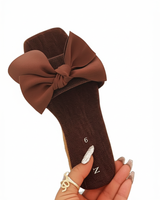 Step into adorable and comfortable style with our Charming Brown Bow Flat Sandals. These sweet sandals feature a rich brown, textured upper, beautifully adorned with a large, feminine bow. The playful yet sophisticated design makes them a perfect addition to your casual wardrobe. The flat sole and soft, fabric-covered footbed ensure maximum comfort for all-day wear, whether you're relaxing at home or enjoying a day out. These sandals are an effortless way to add a touch of cuteness and charm to your look.
