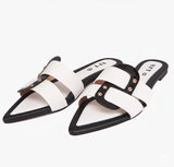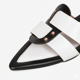 · Striking Design: The sliders feature a sleek, pointed toe with a black and white color block design, creating a bold and contemporary aesthetic.
