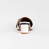 Step out in style with our chic and comfortable Women's Block Heel Sandals. These versatile sandals feature a modern, minimalist design with a broad white strap and a contrasting black accent band, highlighted by a sleek silver-tone buckle. The sturdy block heel provides both a fashionable lift and stable support, making them perfect for all-day wear. The insole is crafted from a soft, dark brown material for ultimate comfort, and the anti-slip sole ensures a confident stride. Whether you're dressing up for a special occasion or adding a touch of elegance to your everyday look, these sandals are a must-have addition to your footwear collection.